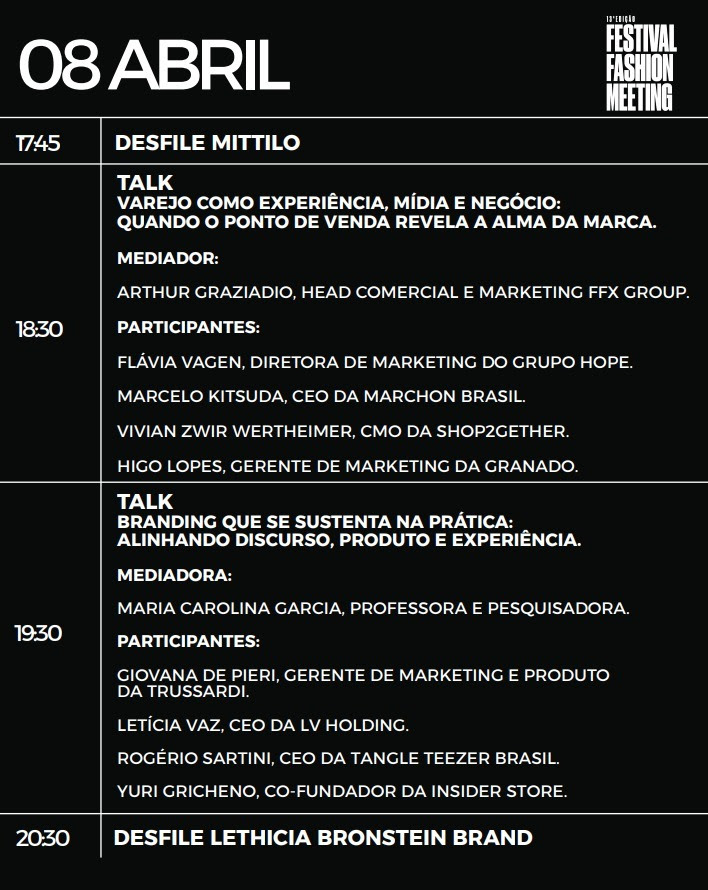 Confira a programação, abaixo, e no link: 13° edição Fashion Meeting
