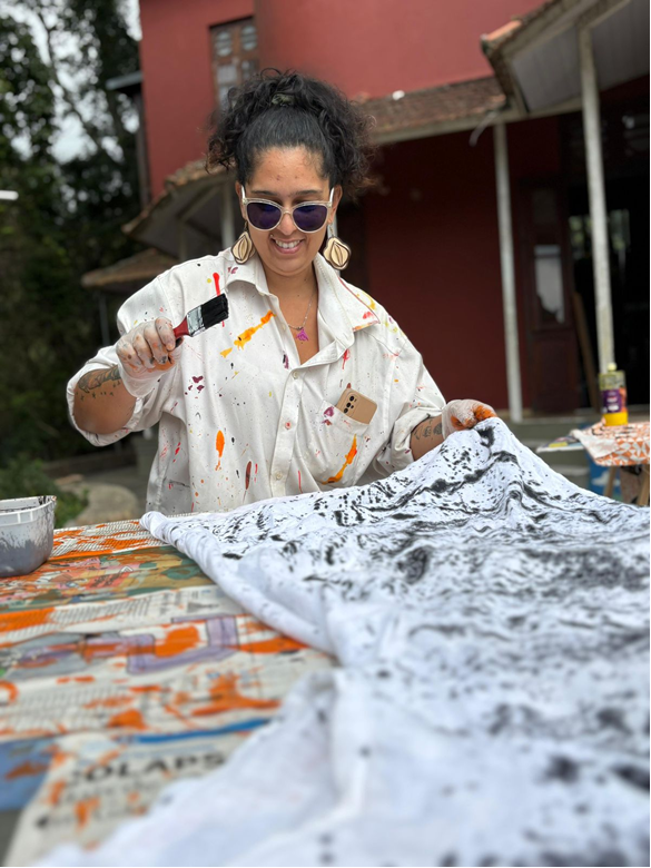 Já o LAB de Moda Prio, em sua primeira edição, trouxe uma novidade: o upcycling como eixo criativo. Ao todo, 60 mulheres trabalharam na transformação de macacões de RPI da empresa, explorando novas possibilidades de design para criar calças, jaquetas, bolsas e acessórios. A confecção das peças foi feita de forma coletiva: elas criaram, cortaram, tingiram e executaram todos os processos juntas. A venda também será coletiva e dividida entre as mulheres participantes.