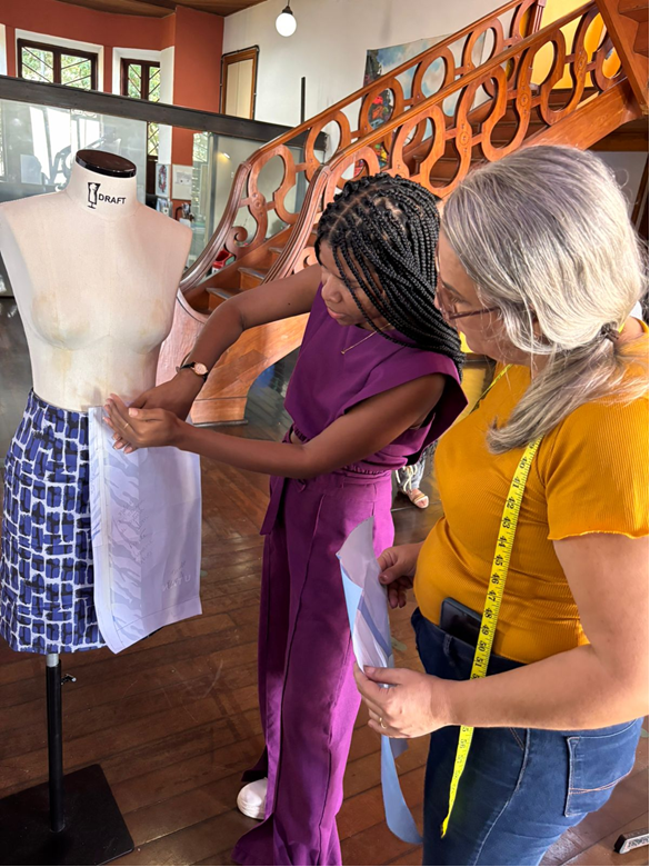 No desfile do dia 27, 53 mulheres apresentam os looks que criaram ao longo de três meses de aprendizado — do moodboard à modelagem e costura final. As alunas, divididas em turmas de iniciantes e avançadas, confeccionam peças autorais que traduzem o desenvolvimento conquistado no período. “É o momento em que elas colocam na passarela todo o conhecimento adquirido. Muitas saem prontas para atuar na moda industrial ou empreender, prestando serviços para marcas e produções diversas”, explica Janice Delfim, gestora local do Instituto Dona de Si.