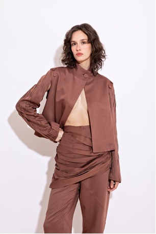 Transpomos esse gesto para a roupa: quando tecidos se tocam sem se impor, e se costuram num novo idioma íntimo, silencioso, impossível de repetir.